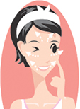 • 取适量乳液/面霜, 点于额头、脸颊、 鼻尖、下巴。STEP 01